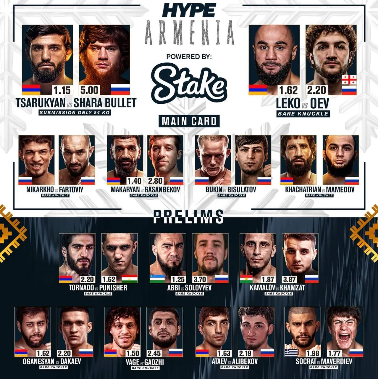 30 декабря в Ереване пройдет турнир Hype FC, который возглавит схватка по правилам грэпплинга между бойцами UFC Арманом Царукяном и Шарабутдином Магомедовым, известным как Шара Буллет